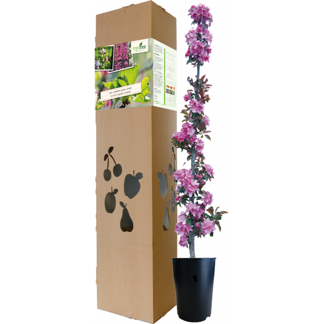 MiniTree Rosalie is een kleine appelboom die heel geschikt is voor in de tuin of op het balkon. Rosalie laat je in het voorjaar genieten van mooie roze bloesem en in het najaar van kleine rode appeltjes met rood vruchtvlees. De appeltjes zijn zuur van smaak en daarom ook heel geschikt voor appelmoes of als decoratie. Het onderhoud aan deze appelboom is minimaal. Snoeien en spuiten tegen ziektes is niet nodig.