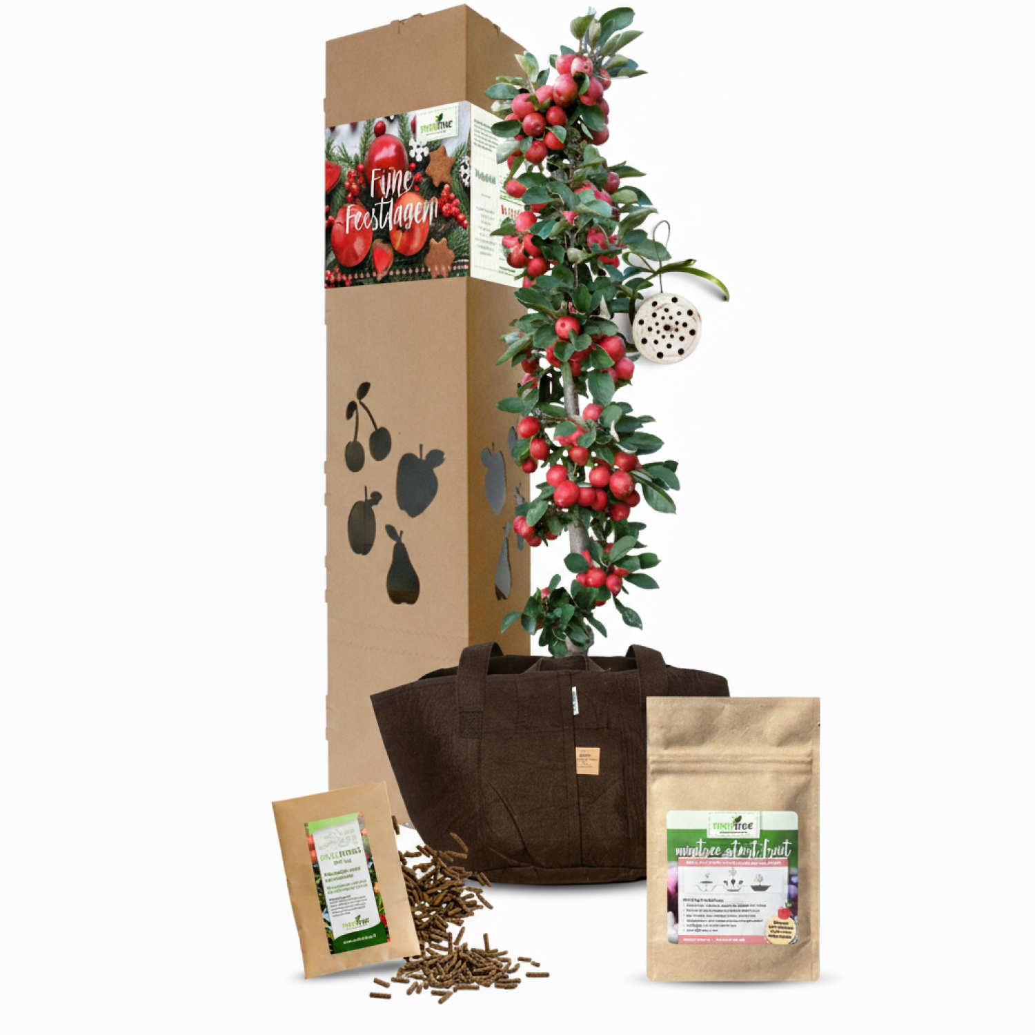 Speciaal voor deze kerst hebben wij een vrolijk en zorgvuldig samengesteld kerstpakketje voor jullie klaargezet. Met liefde verpakt en klaar om te geven, dit pakket bevat: Een prachtige zelf bestuivende MiniTree, een speciale plantentas stijlvol en praktisch, een mini insectenhuisje goed voor de natuur en de biodiversiteit, MiniMest, zodat het boompje de juiste voeding krijgt, en natuurlijk de MiniTree start, voor een sterke en gezonde eerste groeifase. Een origineel, gezond én blijvend geschenk waar de ontvanger nog lang van zal genieten en met een glimlach aan je zal terugdenken. Fijne feestdagen gewenst!